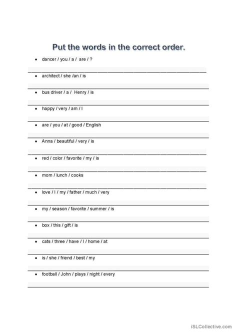 put the words in the correct order